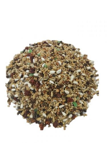 Proso żółte, proso białe, kanar, gryka łuszczona, krokosz barwierski, proso czerwone, owies łuskany, ryż niełuskany, nasiona szpinaku, siemię lniane, sorgo czerwone, pszenica, konopie, nasiona rzodkwi, owies, sorgo białe, rodzynki, owoce jarzębiny, kawałki kiwi, czarnuszka, fasola mung.